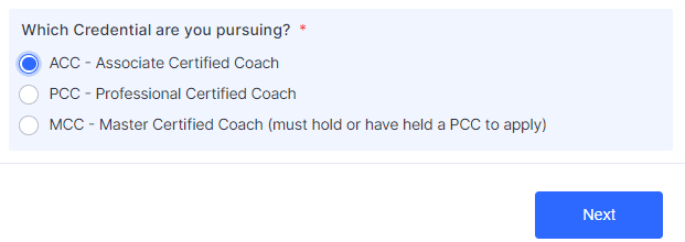 | Which Credential are you pursuing? | ACC – Associate Certified Coach |