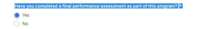 | Have you completed a final performance assessment as part of the is program? | YES |