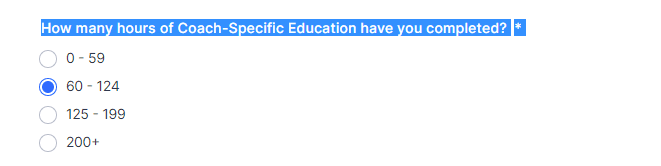 | Please select the accreditation type(s) of the Coach Education program(s) you have completed to meet the education requirements for the Credential you are pursuing. | Level 1 (Programs became available in 2022) |