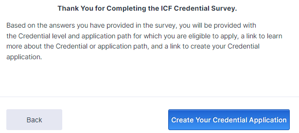 The ICF uses an interactive survey “The ICF Credential Survey” to establish what type of application you are building.